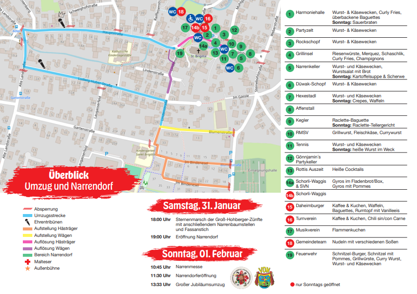 - Samstag ganztägig: Narrendorf (ab Linde bis Weberstraße)